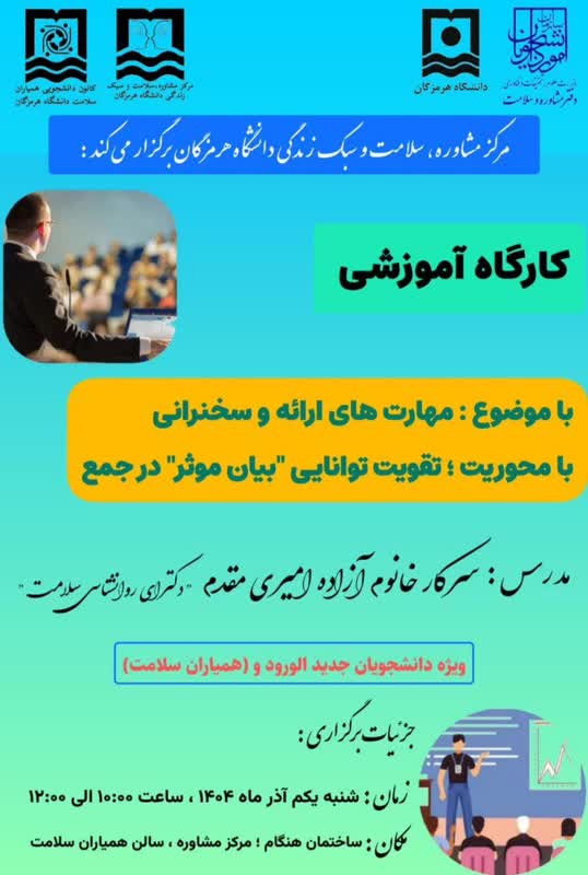 🗳️انتخابات کانون همیاران سلامت دانشگاه هرمزگان روز دوشنبه ۱۹ آبان‌ماه ۱۴۰۴ با حضور جناب آقای دکتر هادی سلیمی (رئیس مرکز مشاوره، سلامت و سبک زندگی) به‌صورت حضوری در سالن همیاران مرکز مشاوره دانشگاه هرمزگان برگزار گردید.