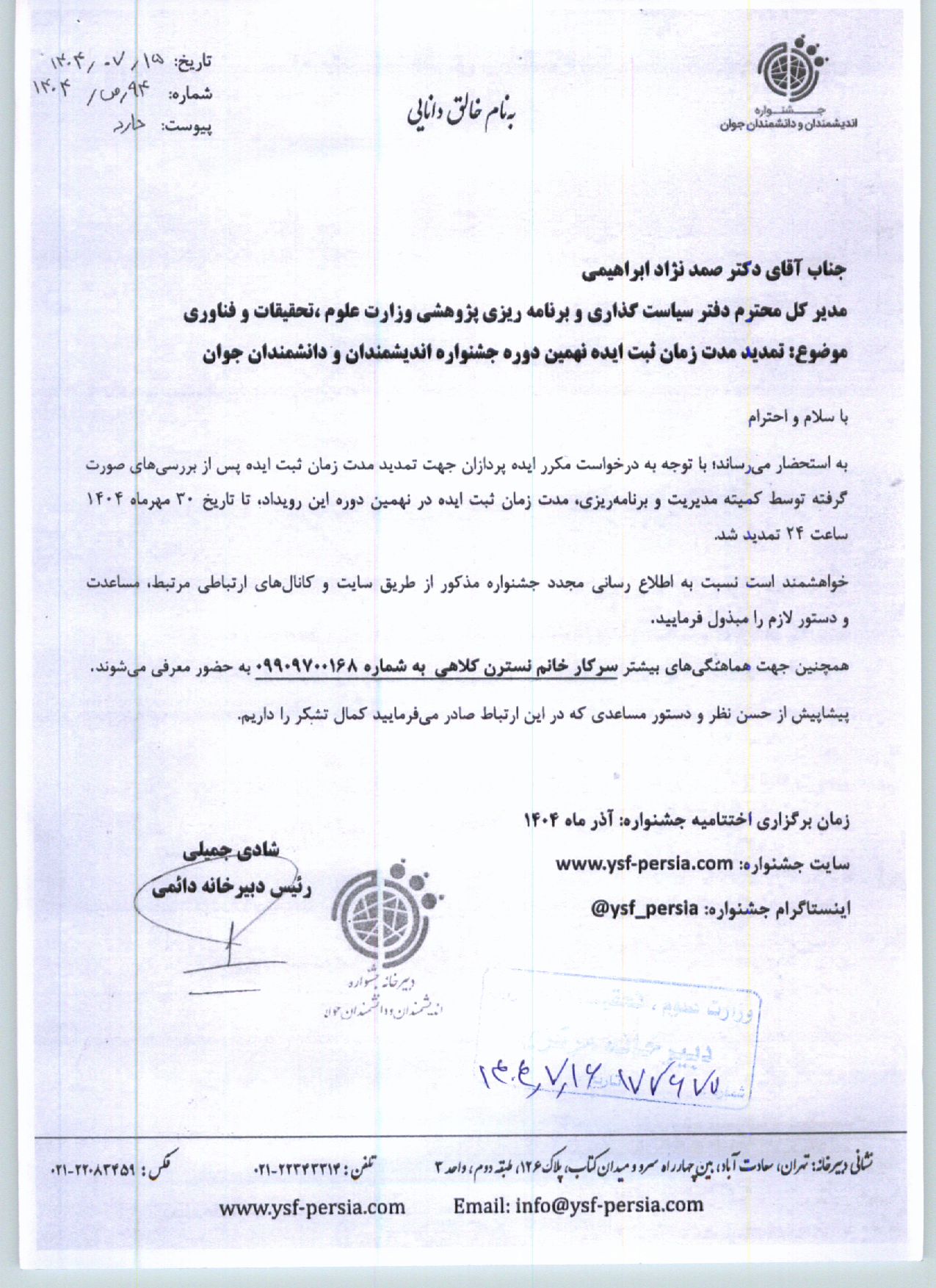 تمدید زمان نهمین دوره جشنواره اندیشمندان و دانشمندان جوان در حوزه علوم پایه